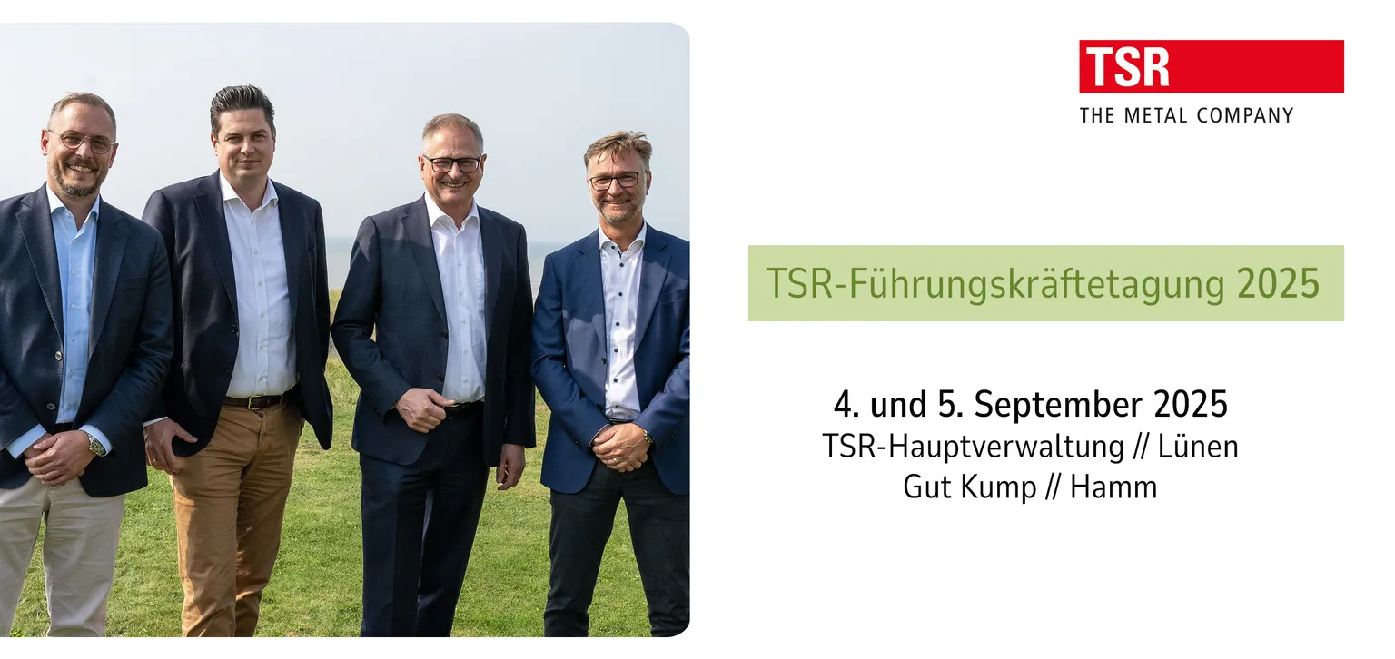 wir möchten Sie herzlich zur diesjährigen TSR-Führungskräftetagung einladen am 4. und 5. September 2025 in der TSR-Hauptverwaltung (Brunnenstr. 138 // 44536 Lünen) und Gut Kump (Kumper Landstr. 5 // 59069 Hamm).